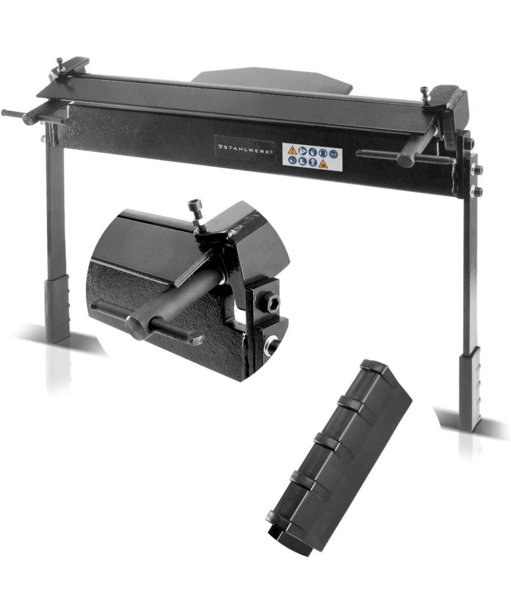- Tôle de maintien spéciale et solide pour fixer confortablement le dispositif de pliage pivotant dans un étau. Recommandé pour les étaux avec une taille de mâchoire de 150 mm ou plus.