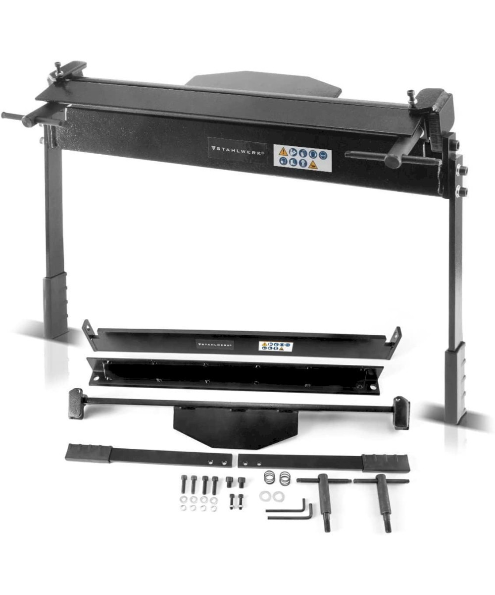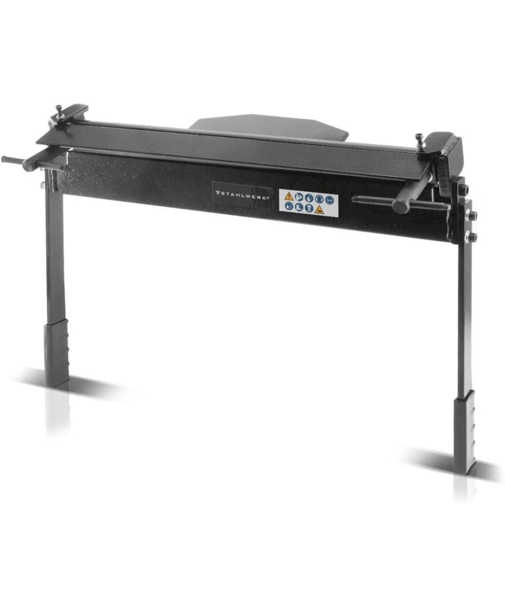 La plieuse AB-460 ST convient au pliage précis de tôles jusqu'à une épaisseur de matériau de 1,2 mm. L'angle de pliage de la plieuse est de 0 à 135 degrés pour une plage de travail maximale de 460 mm. La presse plieuse dispose d'une tôle de maintien spéciale et permet de fixer facilement et confortablement la plieuse pivotante dans un étau. La plieuse de tôles est fabriquée en tôle d'acier solide de qualité industrielle pour une utilisation professionnelle dans l'industrie, l'artisanat et le bricolage.