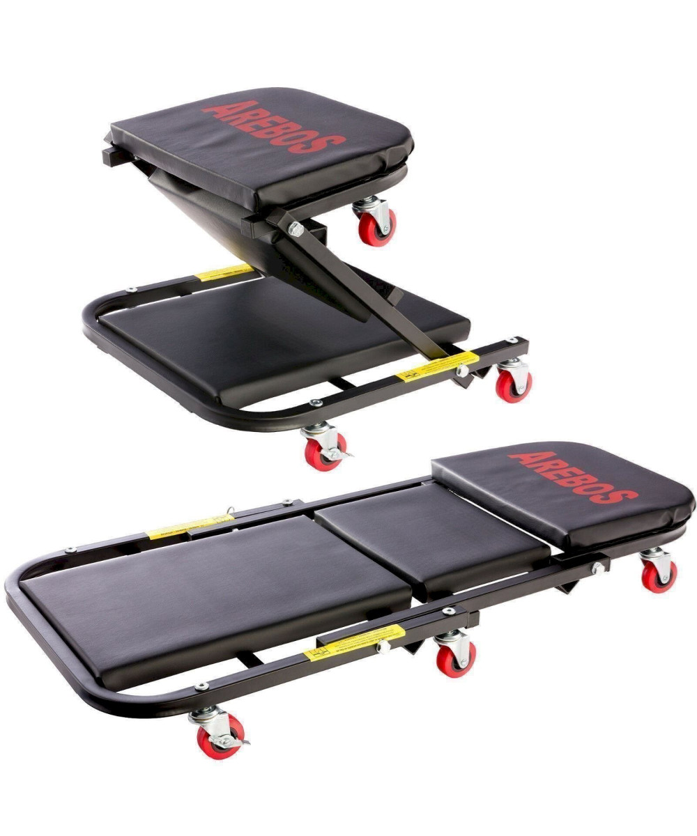 Arebos 2 en 1 Chariot de visite mécanicien chariot d'atelier Siege mécanicien 150 kg