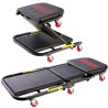 Le produit est doté de coussinets rembourrés ainsi que de roues silencieux, équipés de roulements. En le pliant, le chariot de visite peut être également être transformé en un tournemain en un tabouret stable. Ce chariot de visite est donc parfaitement adapté pour tous les travaux sur et sous le véhicule.