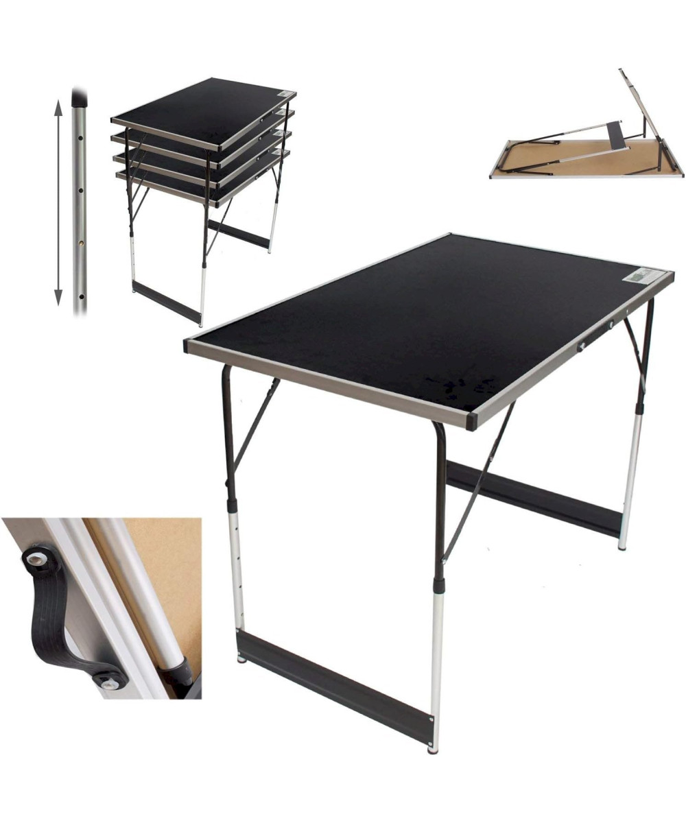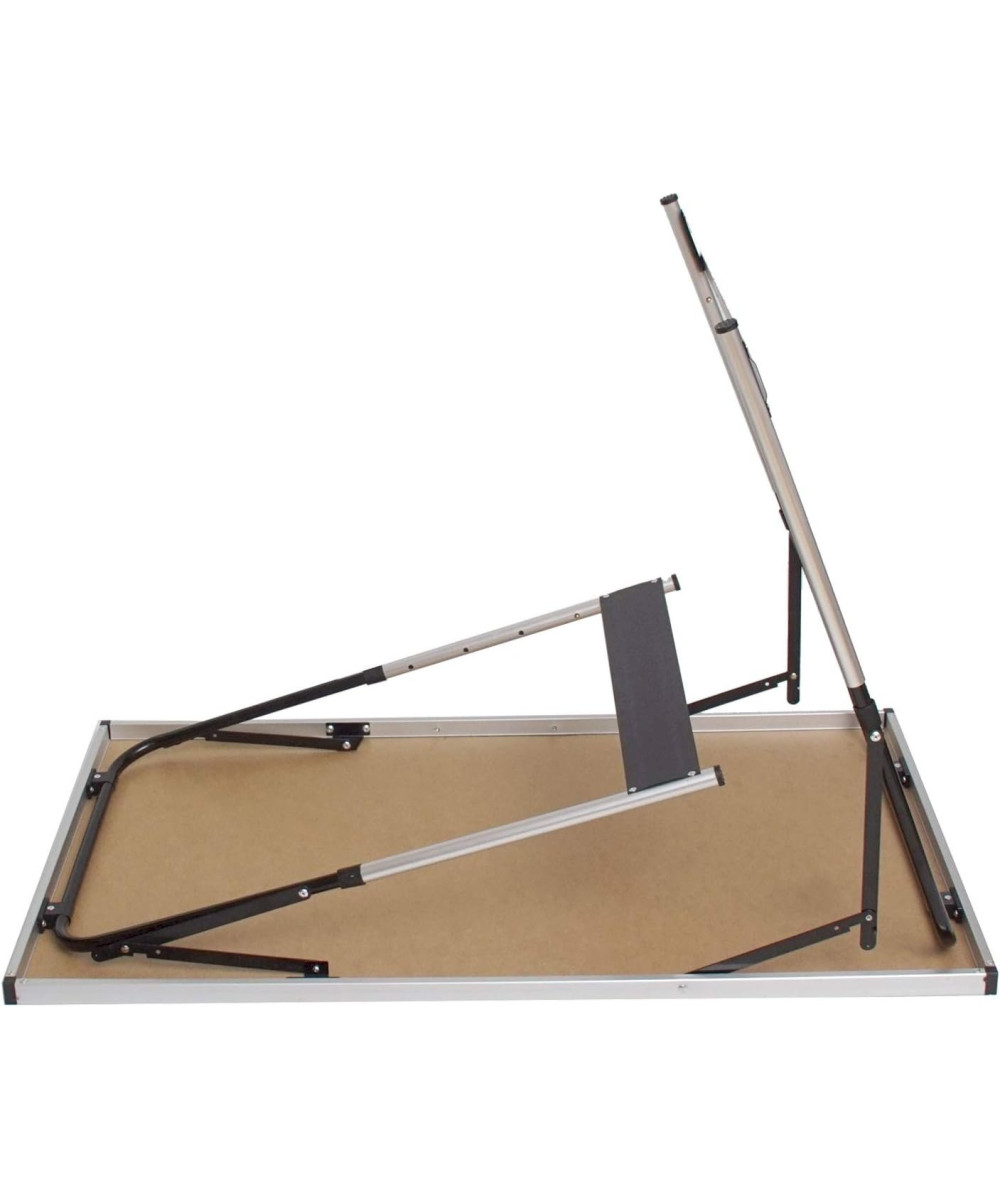 Il suffit de déplier les pieds pliants, d'enclencher, de fixer les raccords et la table est déjà montée.