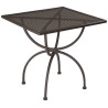 Die zeitlose Form, robust und filigran zugleich, kombiniert die hohen Ansprüche moderner Möbel mit klassischem Design. Zu den prägenden Elementen der Romeo-Serie zählen unter anderem die geschwungene Konstruktion und die gelochten Flächen. Das aufwendig von Hand geschmiedete Eisengestell zeichnet sich durch seine hohe Stabilität und Haltbarkeit aus. Es wurde in einem aufwendigen Verfahren verzinkt und anschließend in Marone pulverbeschichtet. Dadurch ist der Gartentisch gegen äußere Witterungseinflüsse optimal geschützt und eignen sich perfekt für den Outdooreinsatz.
