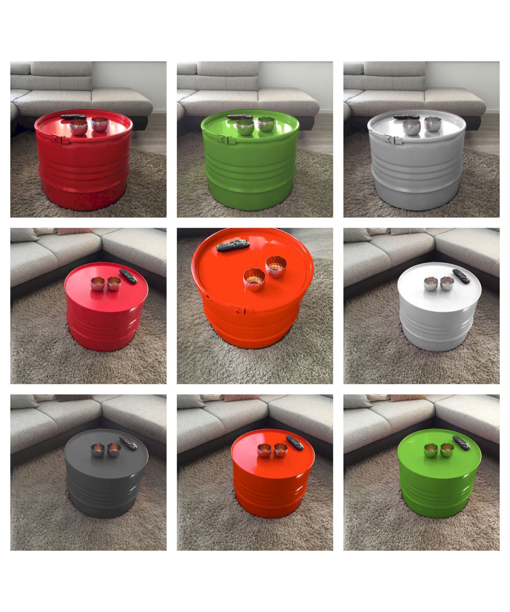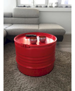 Table basse baril d'huile H45cm Ø57cm avec anneau de serrage rouge