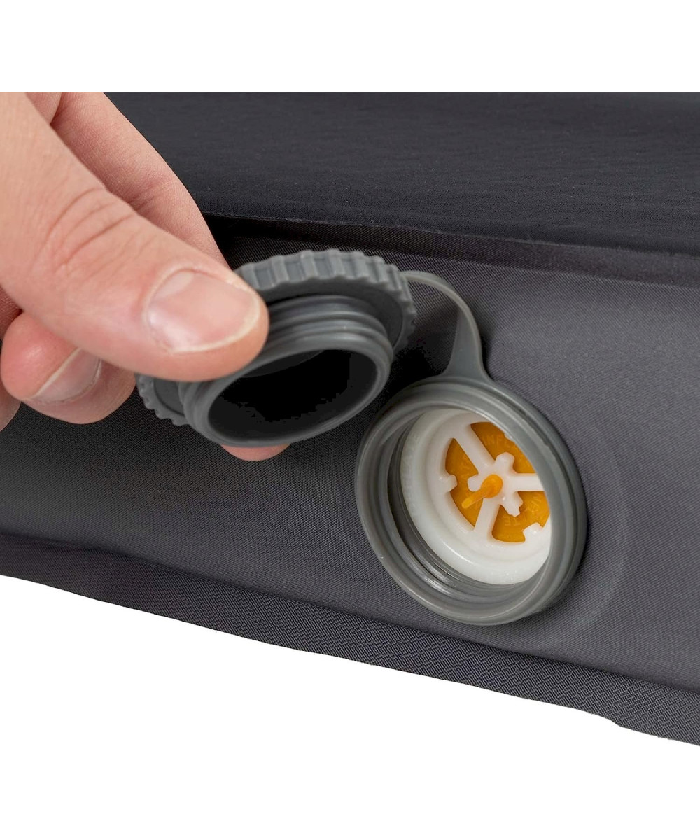 La valve tourne et déjà, l’air se concentre dans le Cloudmat. Si vous préférez les matelas plus durs, vous pouvez le regonfler à tout moment. Sa valve automatique à fonction anti-retour empêche l’air de s’échapper même lorsque le bouchon n'est pas vissé. - Dégonflage