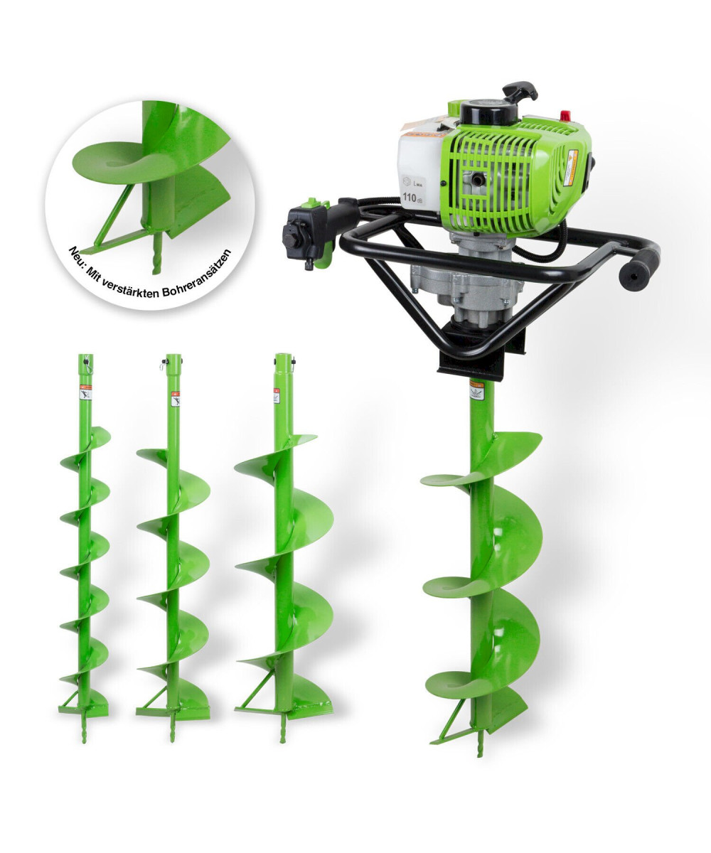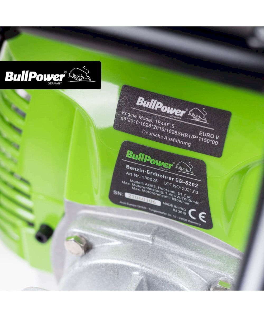 BullPower EB-5202 Benzin Erdbohrer 52ccm Erdbohrgerät Erdlochbohrer Pfahlbohrer (100mm + 150mm + 200mm)