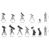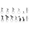Cette monture équatoriale offre déjà la possibilité d'aligner les optiques avec exactitude sur l'étoile polaire. On peut régler la bonne distance polaire et la latitude géographique pour n'importe quel lieu d'observation. Les mouvements micrométriques sur les axes d'ascension droite et de déclinaison permettent de pointer et suivre les objets avec précision , tandis qu'un contrepoids assure l'équilibrage de l'optique.
