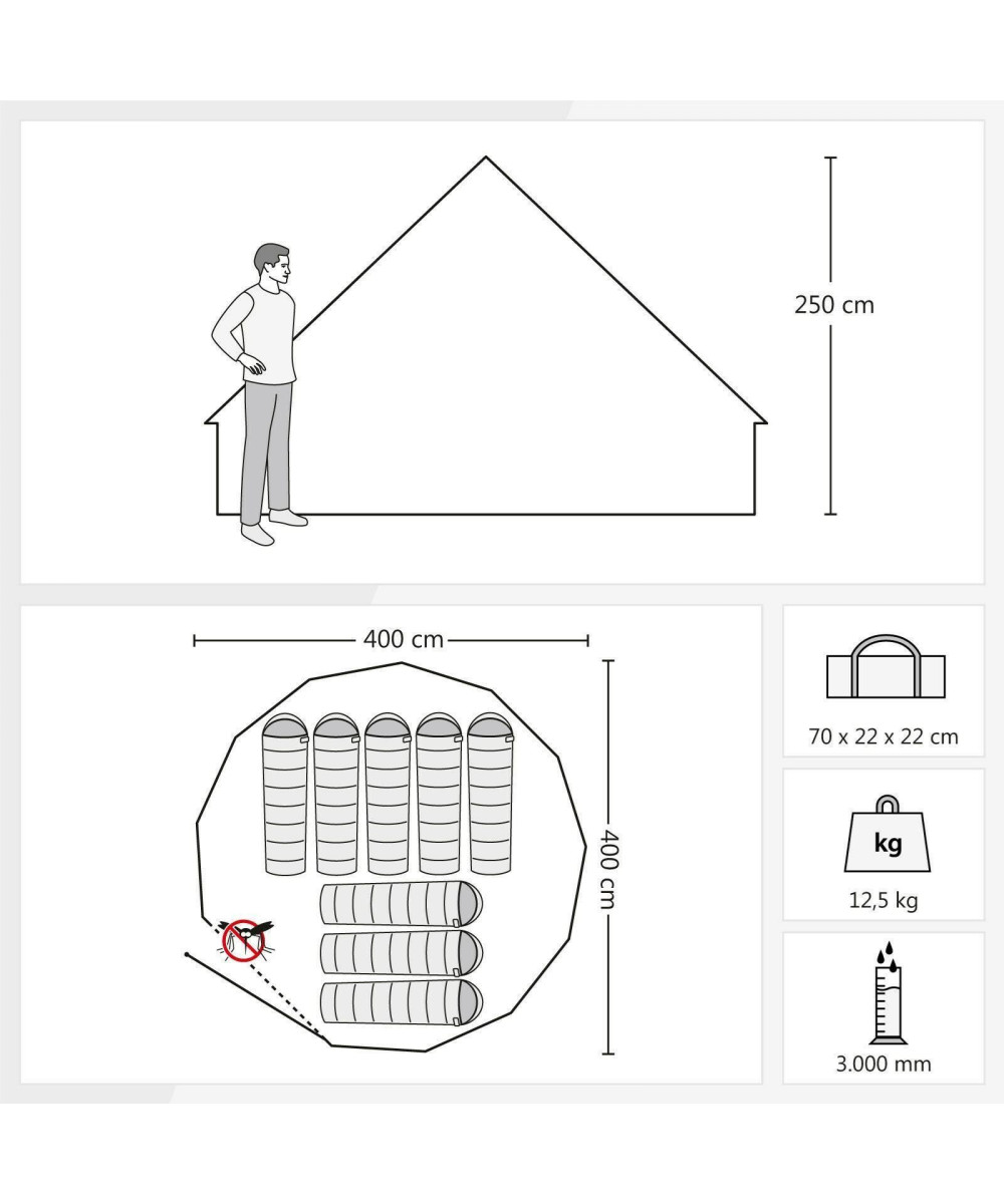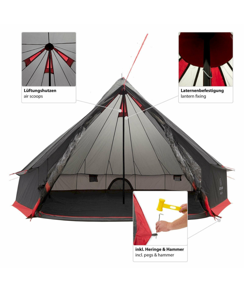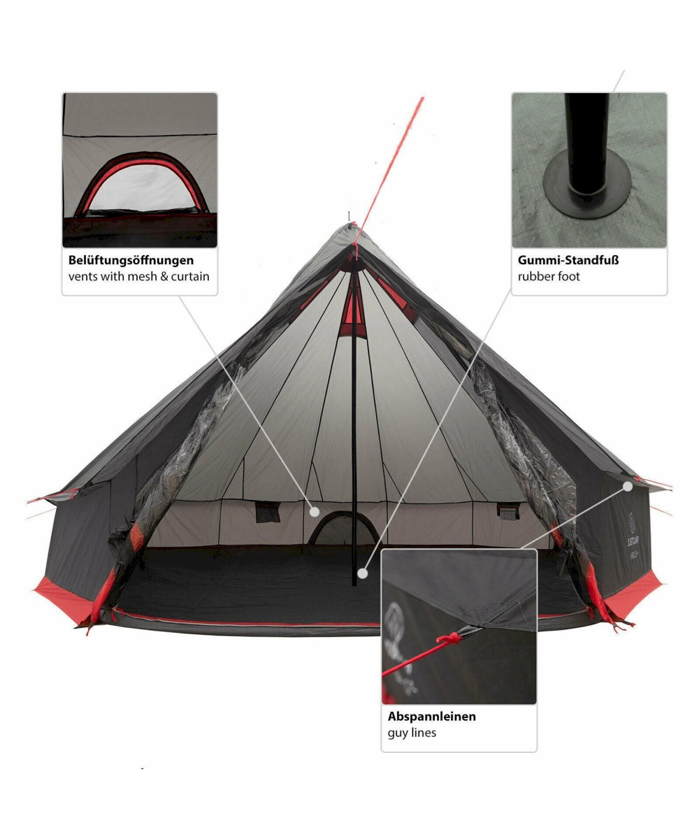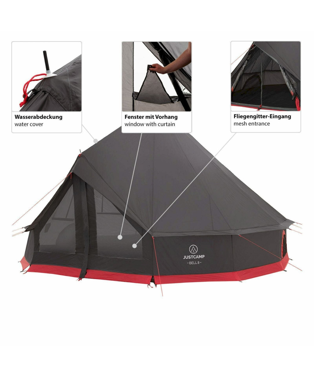JUSTCAMP Bell Tipi Tente de Camping familliale 8 Personnes Gris