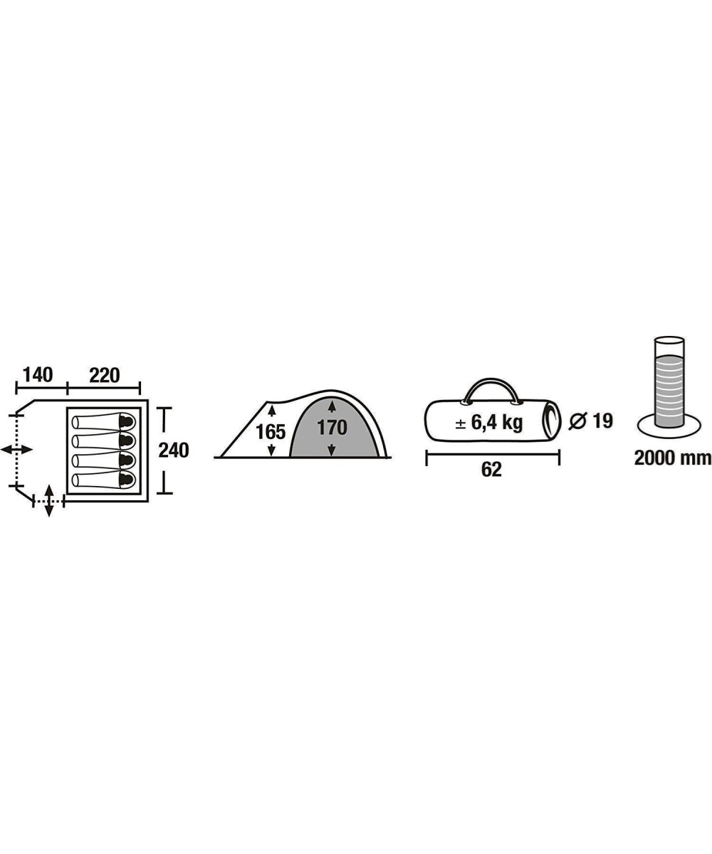 High Peak 10092 Tessin 4 tente dôme bleu brun foncé 360 x 240 x 170 cm