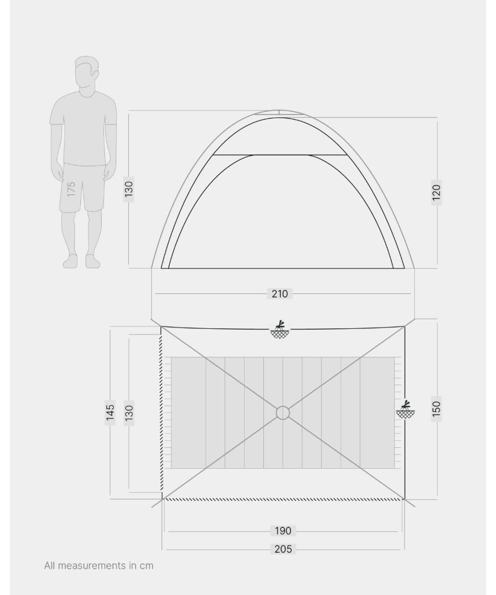- Dimensions extérieures (abri de plage) : 210 x 150 x 130 cm (L x l x h)