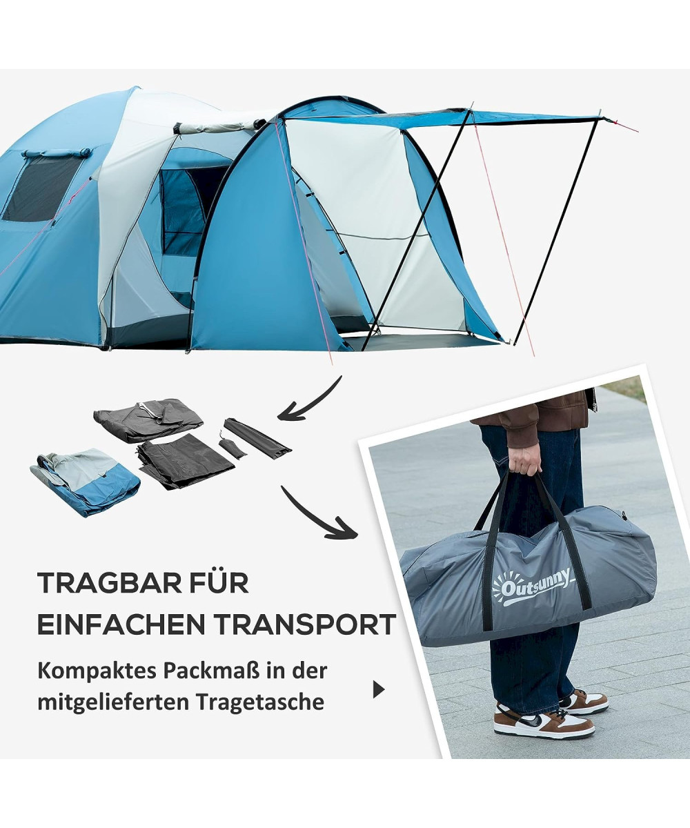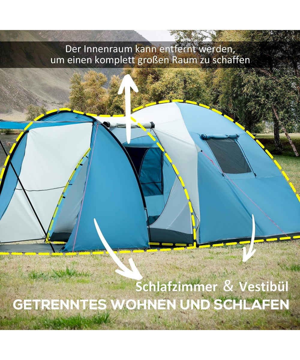 Cette tente Outsunny pour 3 personnes avec deux espaces offre beaucoup d'espace pour dormir et se réunir lors de vos aventures en plein air. Les poteaux en fibre de verre garantissent que la tente reste en forme, et la colonne d'eau de 2000 mm d'épaisseur vous protège des intempéries. Plusieurs fenêtres permettent une circulation de l'air à l'intérieur et permettent une bonne visibilité vers l'extérieur. La cloison est amovible pour créer un grand espace individuel ou en séparer une pièce si nécessaire.