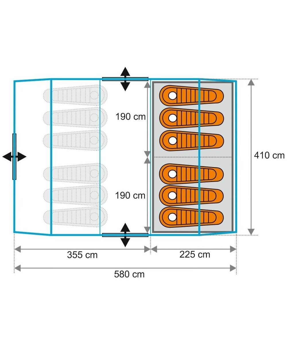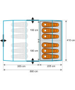 - Ideale Kombination aus Tunnelzelt und Vorraum. Jede Menge Platz zum Unterbringen von sperrigen Artikeln, wie Kühlbox und Campingmöbeln.