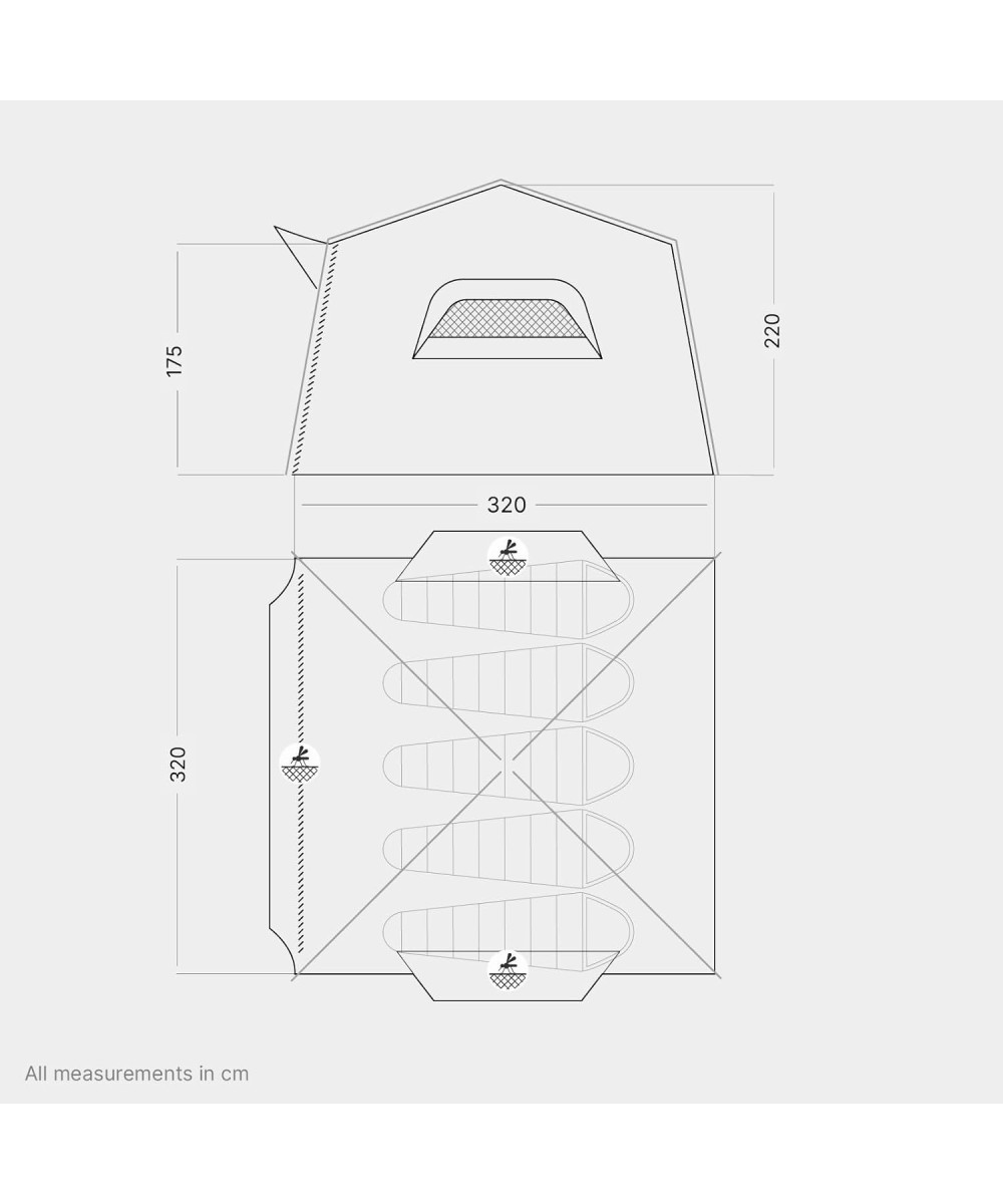 - Dimensions (L x l x H) : 320 x 320 x 220 cm