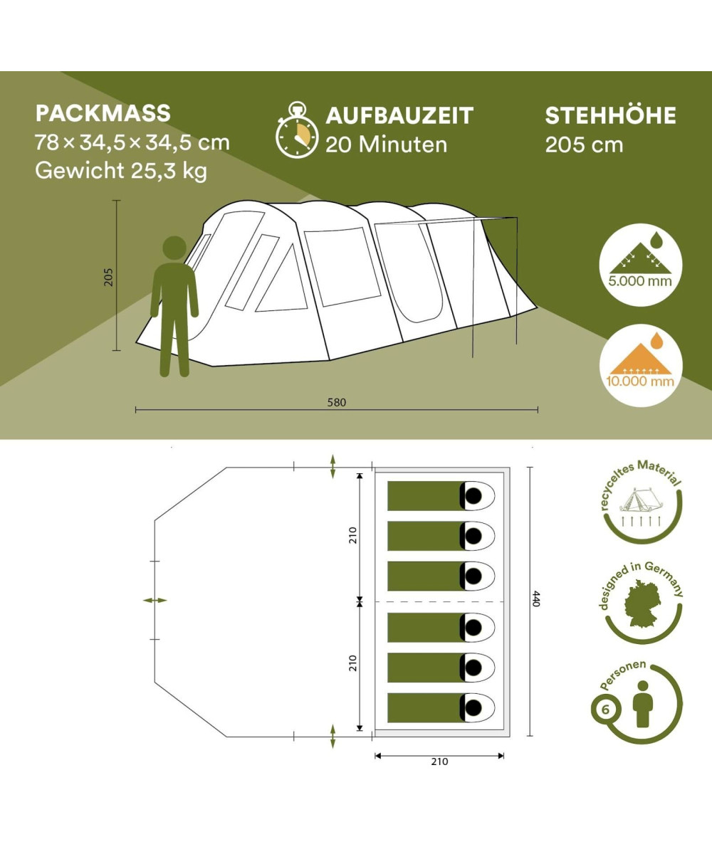 Skandika Nordland 6 Protect tente tunnel 6 places avec tapis de sol cousu et 3 entrées