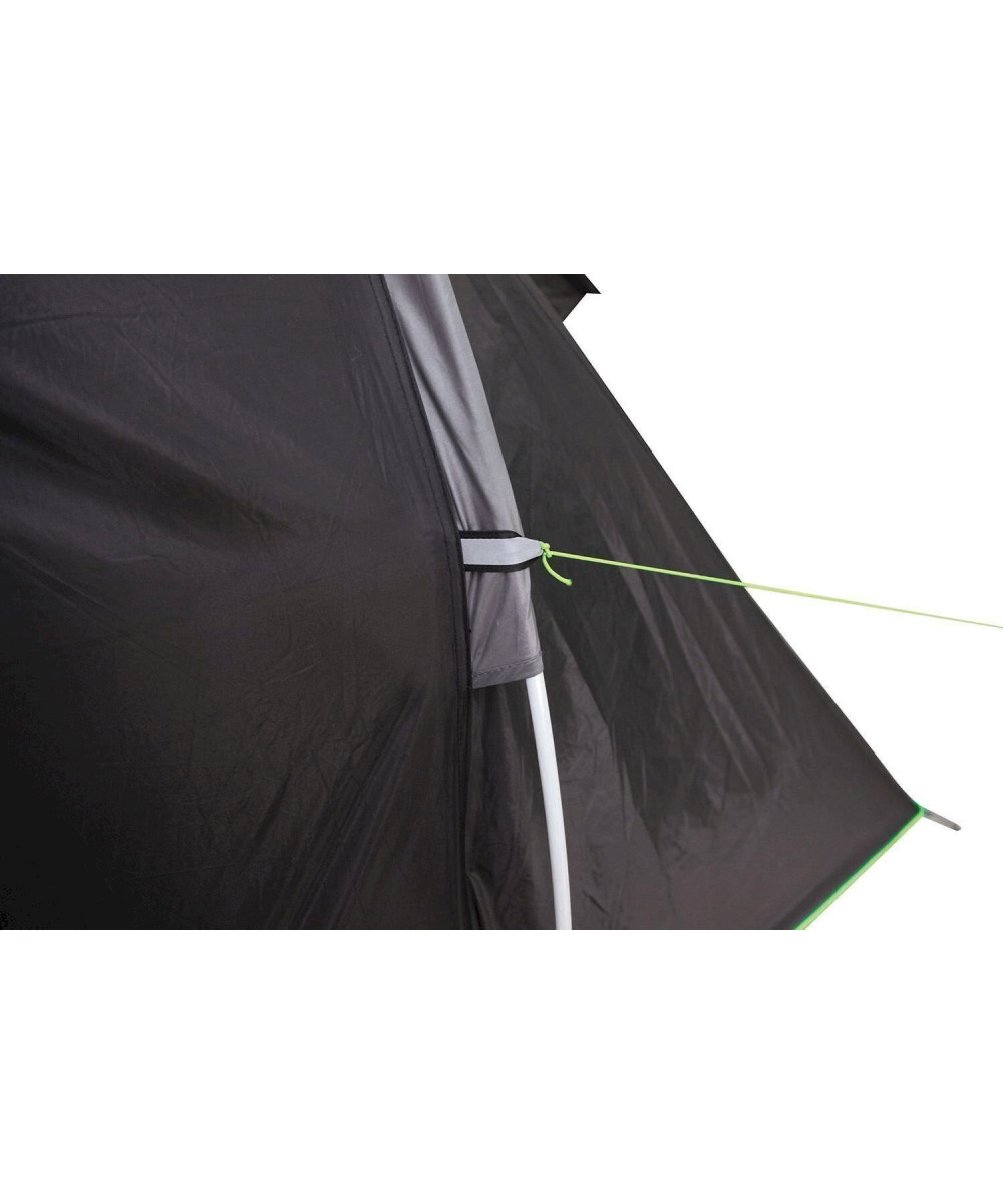 Idéal en cas de mauvais temps. La salle de séjour a deux entrées, des fenêtres à source de lumière, des fenêtres à gaze et un sol de tente séparé et facile d'entretien. L'entrée peut être aménagée en auvent et fournit de l'ombre les jours de grande chaleur. Les ventilateurs Vario HIGH PEAK opposés ventilent la tente même par temps de pluie et doivent toujours être ouverts. La tente a des fermetures éclair extra résistantes et des boucles de tension réfléchissantes pour plus de sécurité. Les sardines en acier de 5 mm de diamètre, très solides, ne se plient pas même sur des surfaces dures. Pour le contreventement, des sardines spéciales de 5 mm en acier rectifiés avec crochets sont fournis pour une meilleure tenue des lignes de tension. La fermeture éclair est équipée d'une gouttière supplémentaire. Cela protège contre la pénétration de l'humidité. La toile extérieure est montée en première, puis les toiles intérieures sont accrochées. L'avantage est que les toiles intérieures restent sèches pendant le montage par temps de pluie. Idéal pour le camping en famille ou les excursions entre amis.