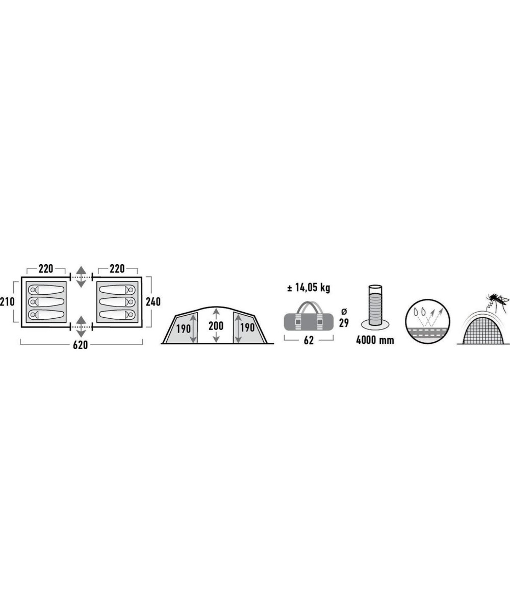 High Peak Tauris 6 Tente, deep grey/green 2020 Tentes tunnel noir