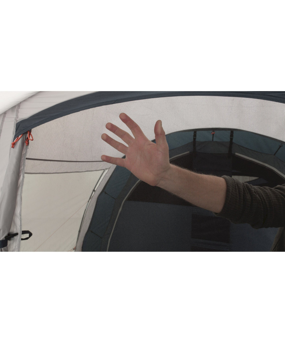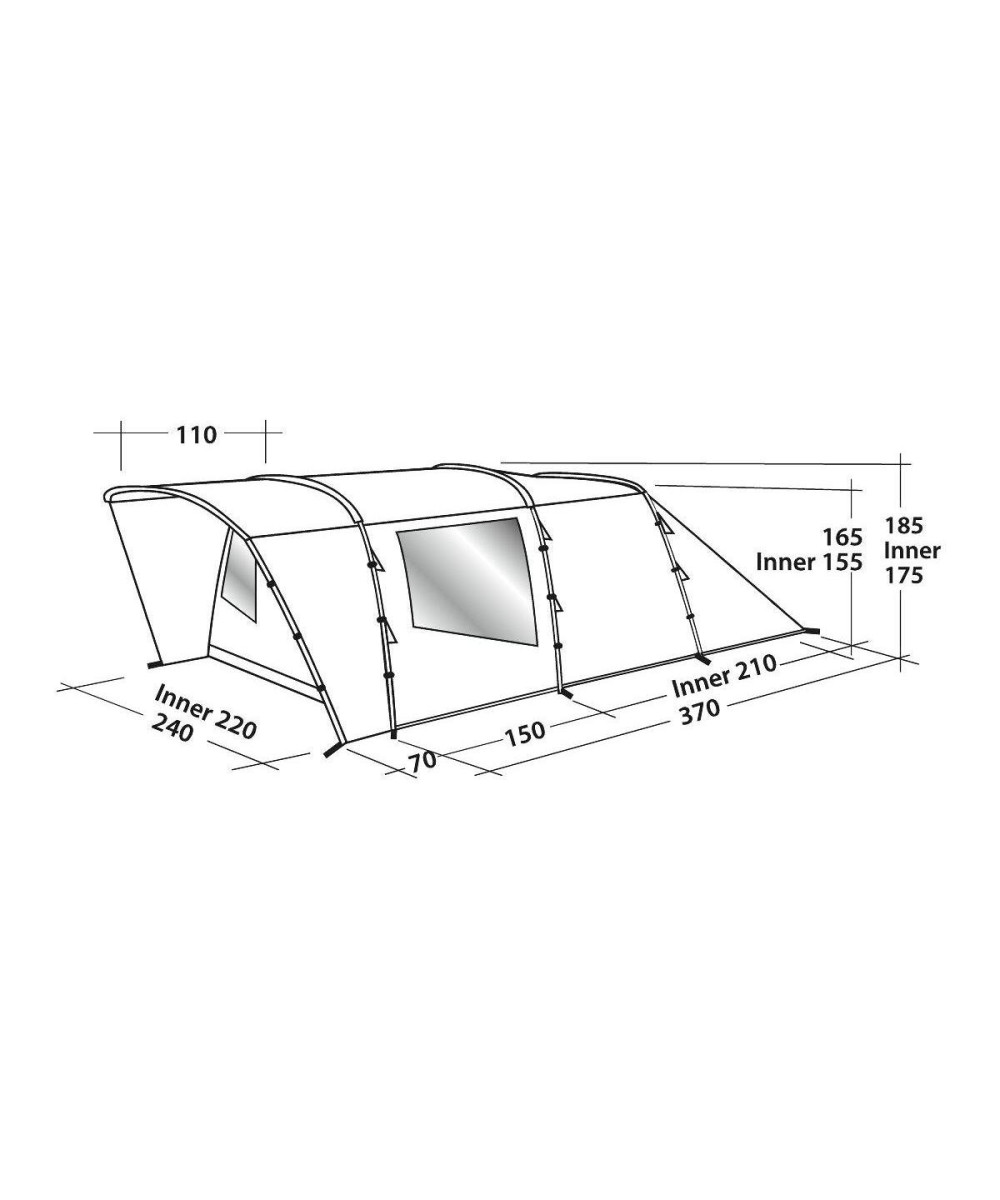 La tente tunnel Palmdale 400 d’Easy Camp est idéale pour les couples et les petites familles à la recherche d’une tente polyvalente avec un grand salon, une entrée principale imperméable et beaucoup d’espace de rangement. Il offre suffisamment d’espace pour une vie extérieure flexible pour quatre adultes, une hauteur libre suffisante grâce aux poteaux en fibre de verre pré-incurvés, une hauteur debout dans le salon et une entrée principale protégée par un auvent. Le grand salon est équipé de fenêtres panoramiques avec rideaux. Les grandes fenêtres fournissent beaucoup d’air frais à l’intérieur. Les murs et le plafond sombres de la zone de couchage réduisent l’incidence de la lumière et permettent un sommeil réparateur. Avec l’aide du rideau de séparation à fermeture à glissière, la tente intérieure peut être divisée en deux cabines de couchage séparées ou utilisée comme une grande cabine de couchage. La grande verrière cintrée protège les évents de la pluie et du soleil, et le sol de la tente cousu éloigne les courants d’air désagréables et les insectes gênants.