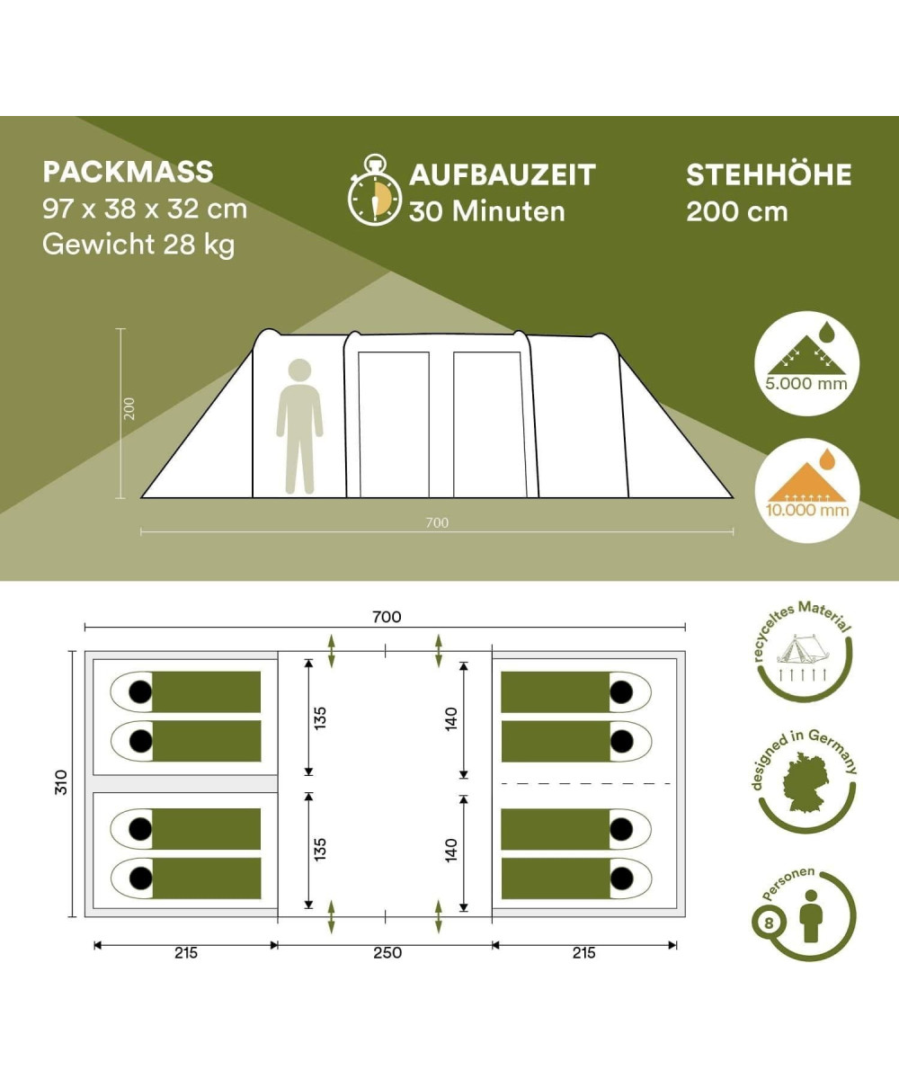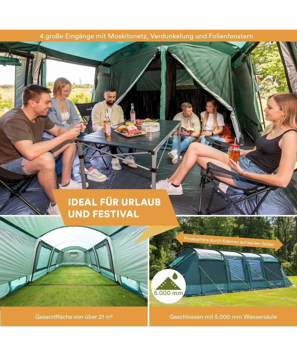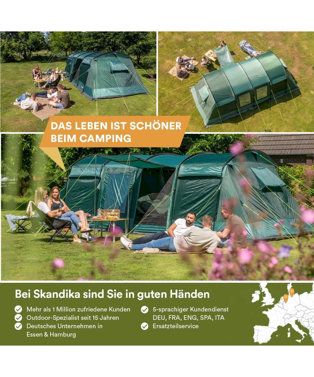 Skandika Montana 8 tente de camping familiale tunnel vert