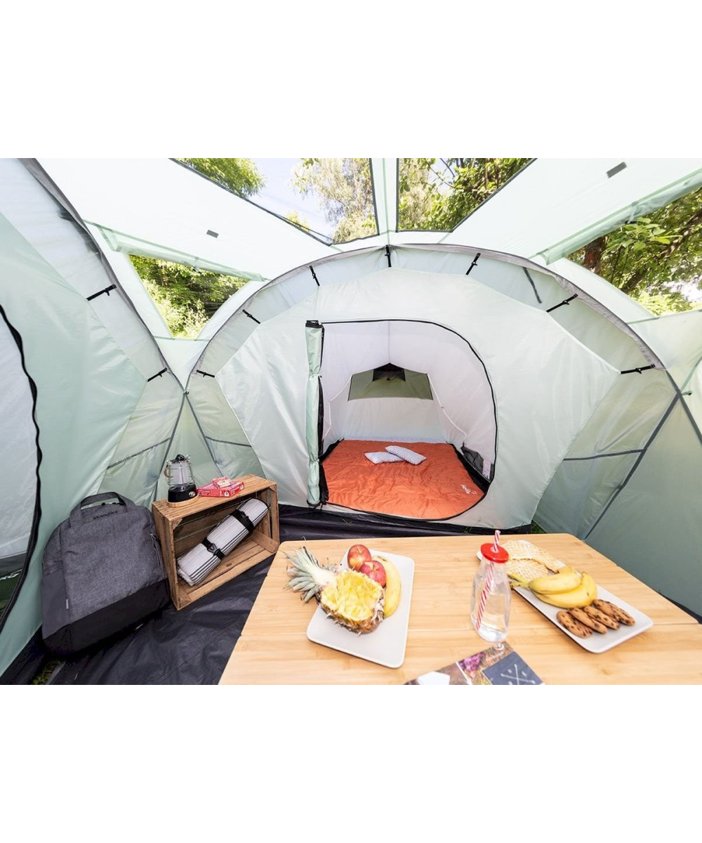 Pour les familles et les amis à la recherche d'une tente fraîche et lumineuse, la Skandika Bern 4 est le choix parfait. Avec son toit panoramique accrocheur et le mélange sobre de couleurs dans les tons gris, cette tente dôme compacte apporte un certain charme et fait bonne figure lors d'un camping ou d'un festival.