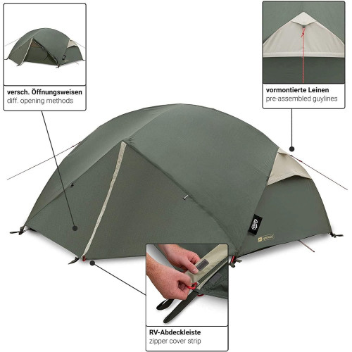 - Tente de camping légère et compacte pour 2 personnes avec 2 apsides / Ouvertures d’aération à fermeture intérieure