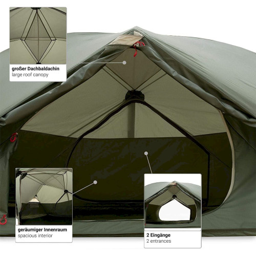 - Très résistante au vent / Dimensions réduites repliée / Possibilités de montage universelles / Tentes extérieure et intérieure utilisables séparément