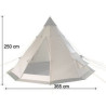 L a tente de tipi est idéale pour 4 personnes et offre une hauteur de stand optimale. C'est une tente de faîte qui convient à tous les temps et aux 4 saisons. La tente peut être installée facilement et rapidement par une seule personne. Avec des coutures étanches et une colonne d'eau de 3 000 mm, cette tente peut même résister à de longues randonnées en montagne. Une bonne ventilation, surtout la nuit, est essentielle pour un sommeil réparateur et notre santé. C'est pourquoi notre cabine de couchage a une grande entrée et est faite de tissu respirant et de moustiquaires.