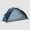 La construction d'armatures est entièrement reliée. C'est ce qui rend la tente particulièrement stable au vent et facile à monter. Seuls quelques sardines suffisent – un avantage déterminant lorsque vous campez par exemple sur une surface rocheuse. Les tentes intérieure et extérieure sont reliées et se fixent par des clips sur l'armature – très pratique lorsqu'il faut monter la tente sous la pluie.