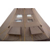 L a tente de tipi est idéale pour 4 personnes et offre une hauteur de stand optimale. C'est une tente de faîte qui convient à tous les temps et aux 4 saisons. La tente peut être installée facilement et rapidement par une seule personne. Avec des coutures étanches et une colonne d'eau de 3 000 mm, cette tente peut même résister à de longues randonnées en montagne. Une bonne ventilation, surtout la nuit, est essentielle pour un sommeil réparateur et notre santé. C'est pourquoi notre cabine de couchage a une grande entrée et est faite de tissu respirant et de moustiquaires.