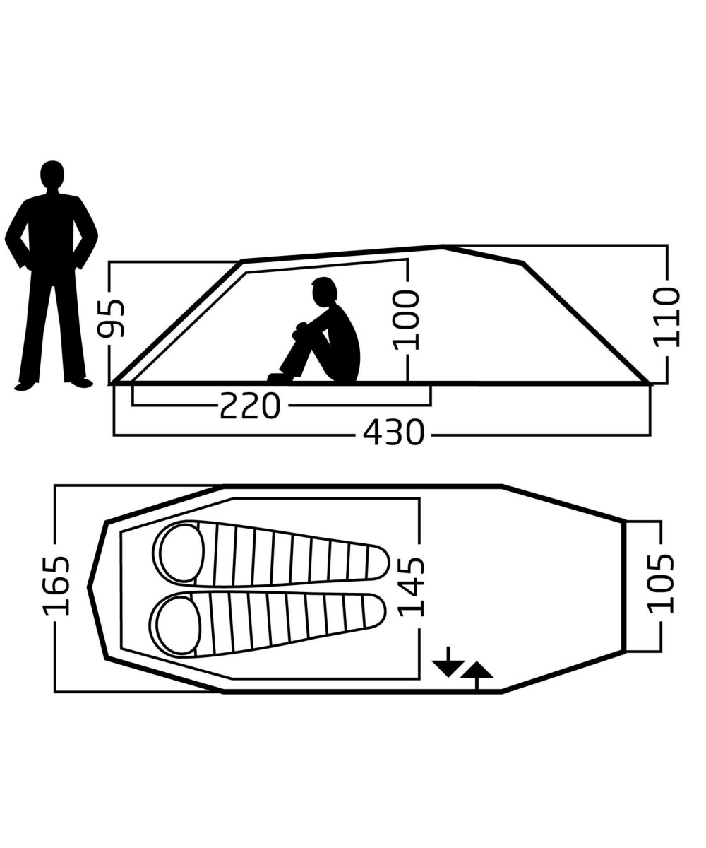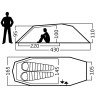 Tente : Utilisation : sports de montagne Type : tente tunnel Nombre de personnes/de places allongées : 2 Type : couchage en longueur Nombre de pièces : 1 Matériaux : Revêtement extérieur : 100 % polyester Catégorie de la colonne d'eau extérieure : 1500 à 3000mm Tente intérieure : 100 % polyester Sol de tente : 100 % polyester Catégorie de la colonne d'eau extérieure : 3000 à 10000mm Liens : aluminium Dimensions : Intérieur (L x P x H): : 220 x 145 x 100cm Taille au sol (L x P) : 430 x 165cm Poids total de la tente : 3400g Taille d'emballage (L x P) : 20 x 50cm Équipement : Nombre des aérations : 2 Nombre d'haubanages : 10 revêtement de surface : Pu Informations supplémentaires : Ventilation optimale, Grand vestibule pour stocker, cuisiner ou prolonger les chambres. , Construction tunnel aérodynamique, Tente extérieure extrêmement robuste avec une conception anti-pluie, Code couleur pour la glicière de l'entrée, Plusieurs options de stockage, Poches de rangement pour ranger les portes intérieures et extérieures de la tente, Tente assez haute pour que vous puissiez vous tenir assis, 21 sardines en aluminium, Tente extérieure d'aspect Ripstop, colonne d’eau , Tapis de sol avec polyester Oxford, colonne d'eau