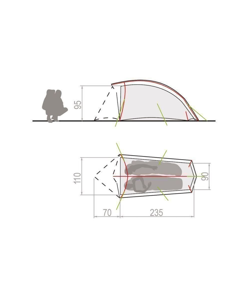- Double toit : 100% Polyamide ; 20 D Ripstop both sides Silicone Schmerber : 3 000 mm