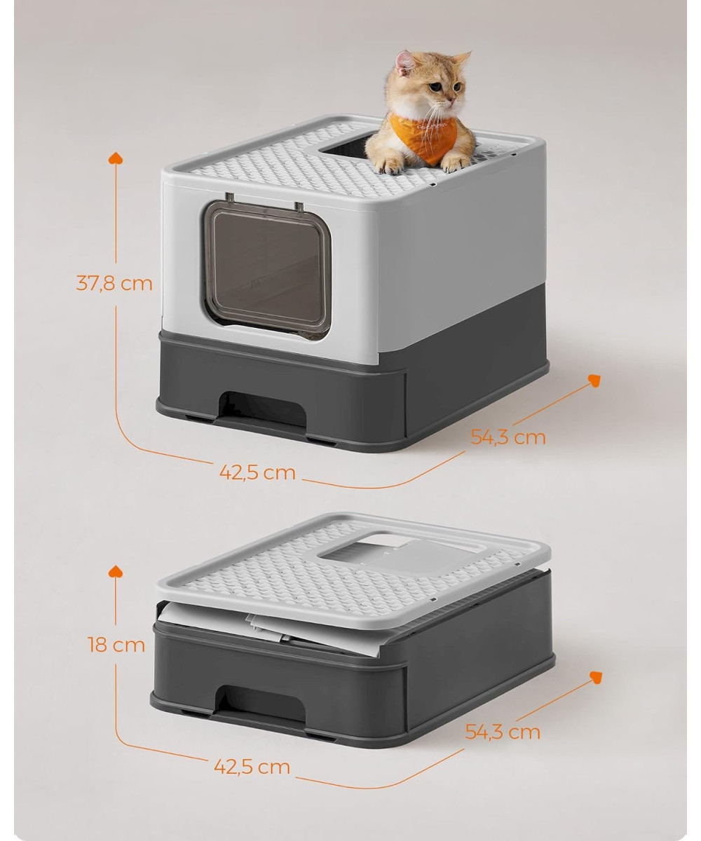 - Pour les chats dodus : Avec une ouverture sur le dessus et un grand espace à l'intérieur, cette maison de toilettes convient aux chats jusqu’à 15 kg