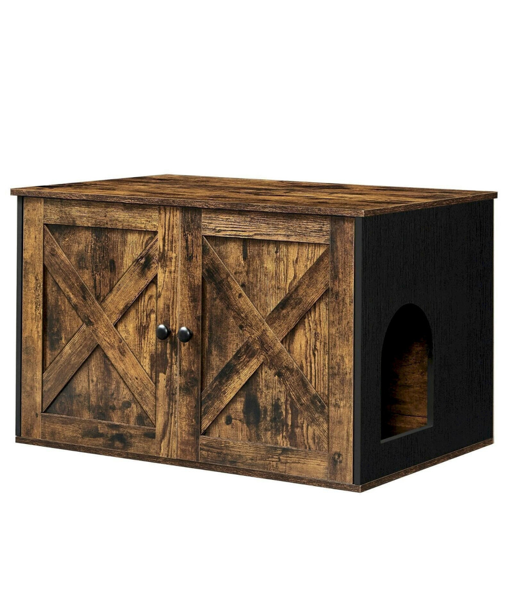 FEANDREA Maison de Toilette pour Chats Marron Rustique et Noir PCL002X02