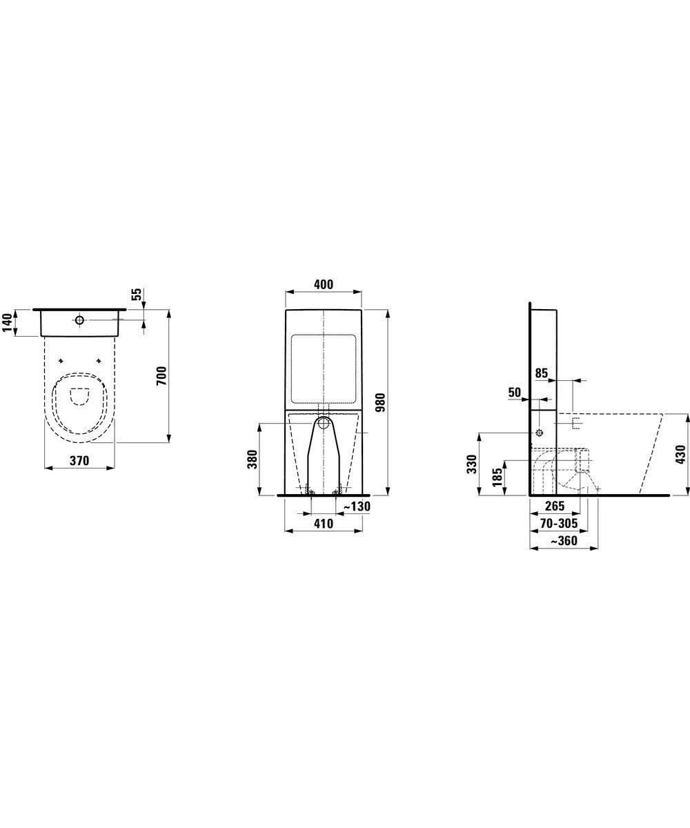 - Sans rebord de chasse grâce à un bord ouvert, donc pas d'espace caché pour les dépôts et la saleté