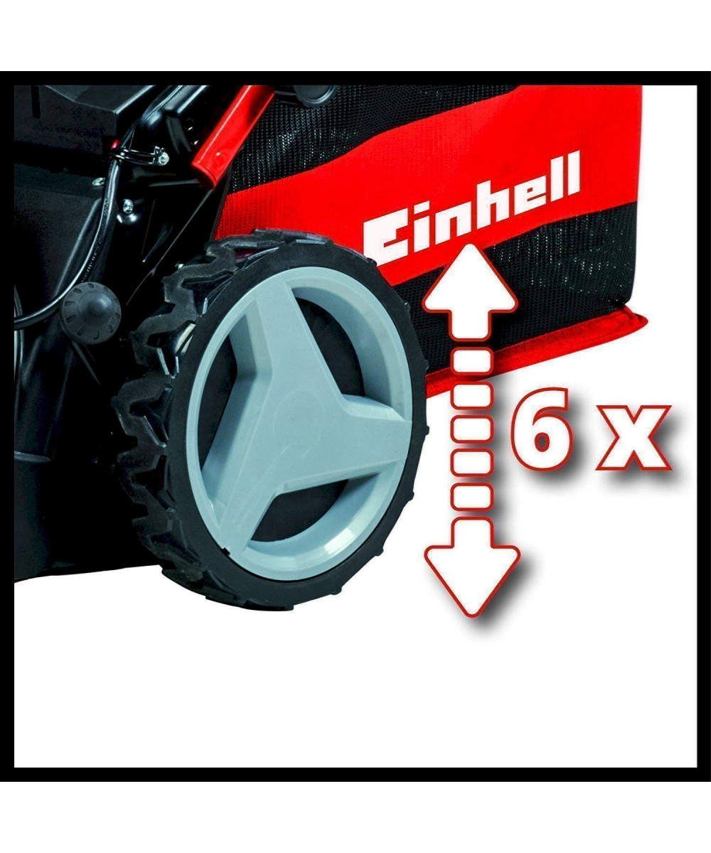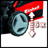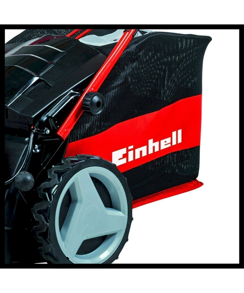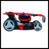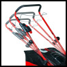 Système de batterie – Batterie Power X-change Témoin du niveau de charge de la batterie avec 3 Leds Les batteries sont compatibles avec d’autres outils de la gamme Power Xchange Avec 2 chargeurs rapides Moteur électrique sans charbons Carter Einhell à technologie Vortex Réglage centralisé de la hauteur de coupe, 6 positions Conception du guidon Einhell avec position de nettoyage et de stockage Guidon repliable, réglable en hauteur 3 positions, à revêtement tendre « Softgrip » Grand bac de ramassage avec indicateur du niveau de remplissage et 2 poignées de vidage Fonction mulching par adaptateur Éjection latérale et éjection à déflecteur Grandes roues sur roulement à billes Avec grattoir pour le nettoyage en position verticale Surface de tonte doublée grâce à la possibilité de fixer des batteries supplémentaires Conseillée pour des surfaces jusqu‘à 500 m (+500 m) Caractéristiques techniques : Batterie : 18 V (2x) | 4000 mAh | Li-Ion Régime à vide : 3300 tr/min. Largeur de coupe : 47 cm Réglage de la hauteur de coupe : 6 positions | 30-65 mm | central Bac de ramassage : 75 l Diamètre des roues avant : 200 mm Diamètre des roues arrière : 280 mm