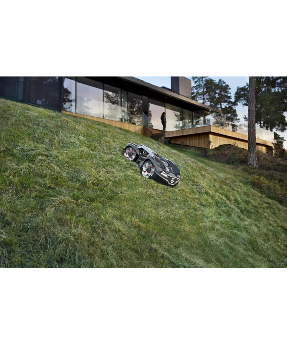 Automower® AWD models feature technology that optimizes the control of each individual wheel in order to enable superior operation in the most demanding terrain. With an impressive slope performance that handles 70 % (35°) incline. - Automower® Zone Control avec technologie AIM
