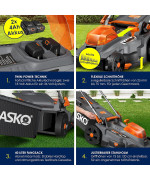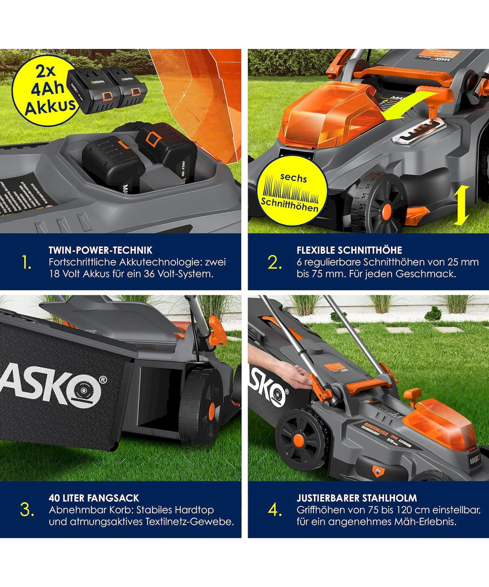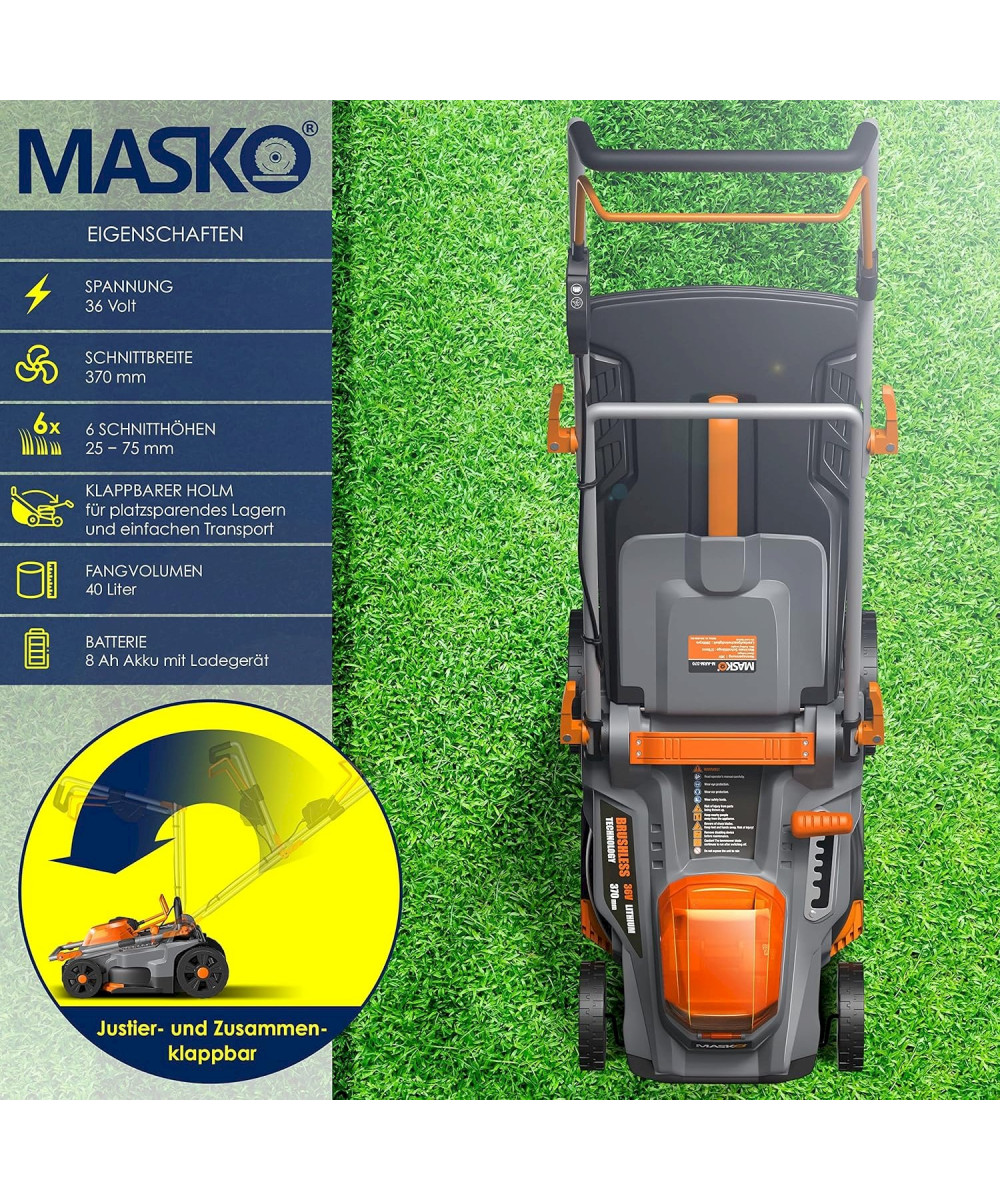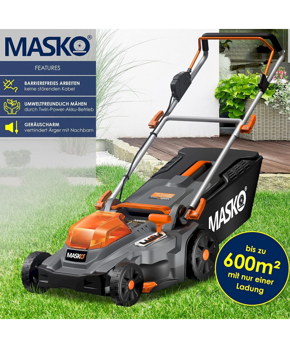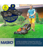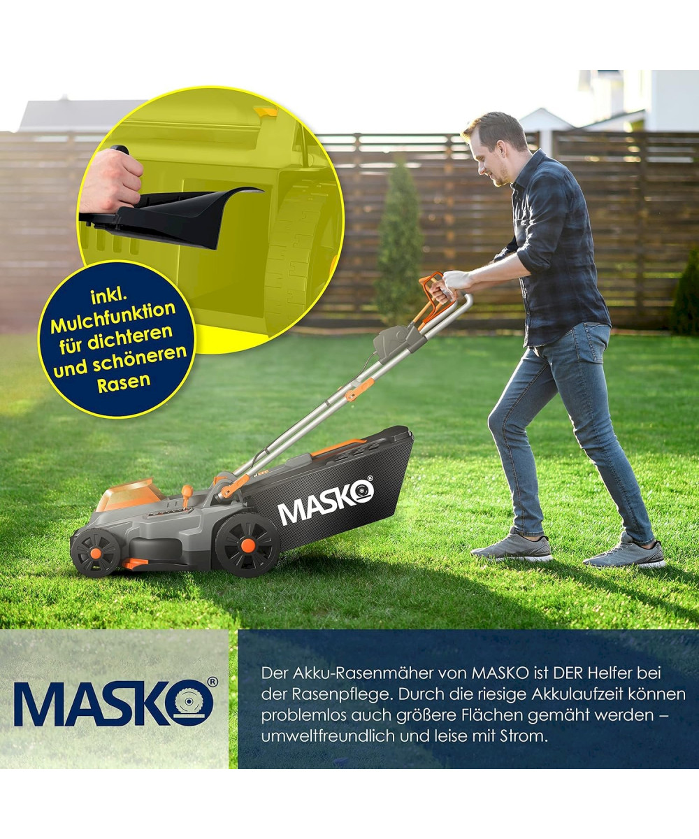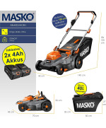 MASKO Tondeuse à gazon sans fil largeur de coupe 37cm (avec 2x batteries 4Ah et chargeur double)