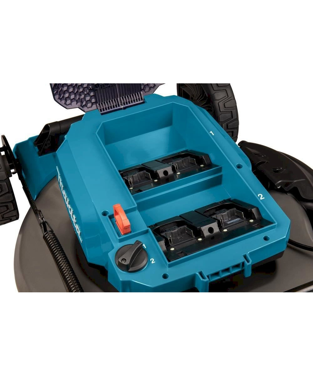 - Tondeuse à gazon sans fil 2 x 18 V silencieuse avec un plateau en acier robuste.