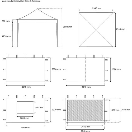 Le pavillon pliant Basic de PARAMONDO mesure 300 x 300 cm.
