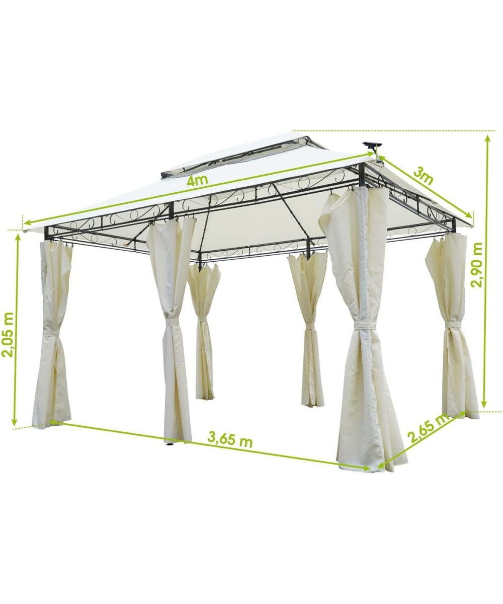 - Der Pavillon ist mit 39kg besonders schwer und robust gebaut, dank der robusten Stahl-Pfosten ist er zudem absolut standsicher.