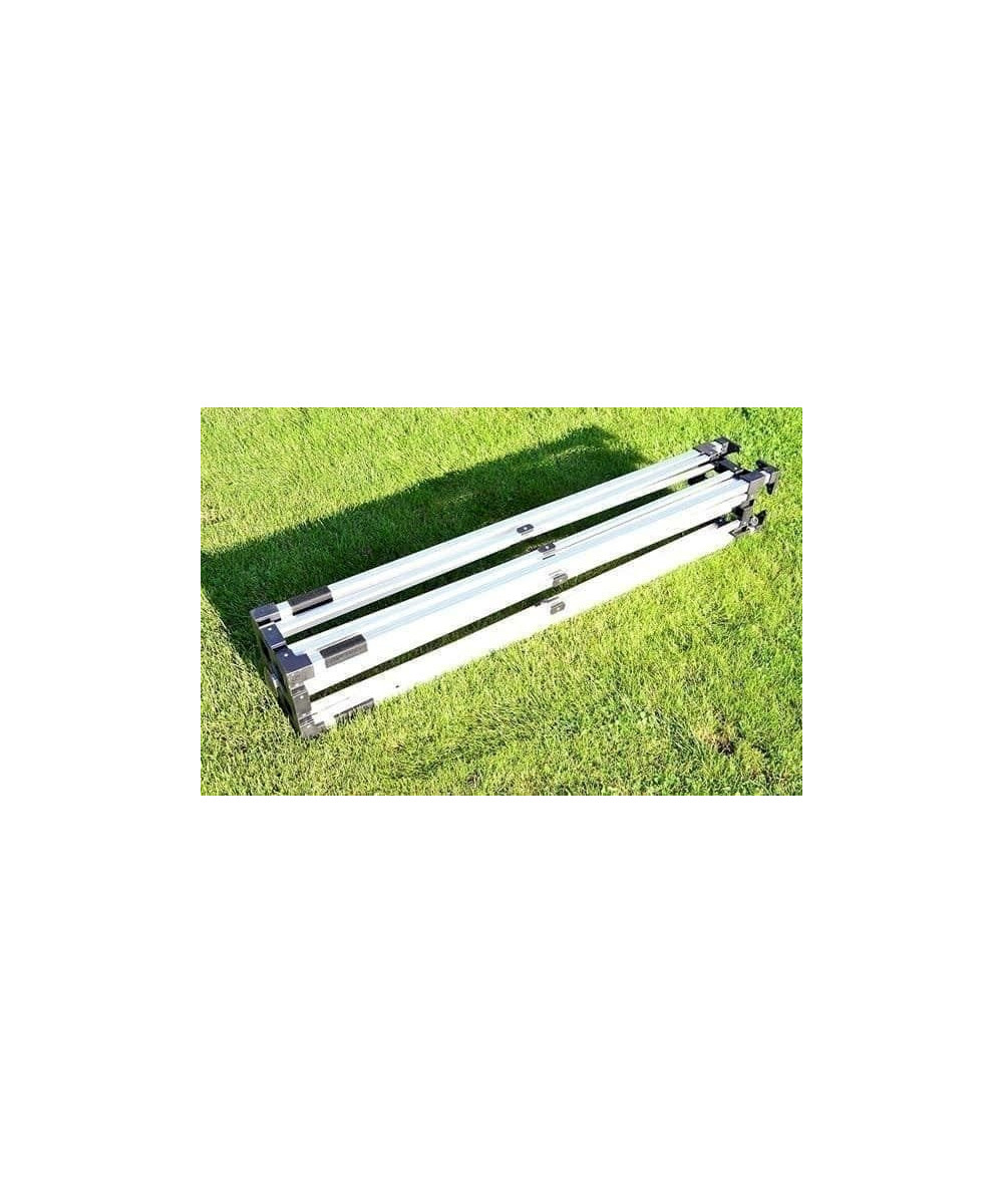 Maße: L 3,0 x B 3,0 x H 3,35 m (Standbeine voll ausgefahren) 3-fach höhenverstellbar mittels Teleskopbeinen Durchgangshöhe: 2,0 - 2,1 - 2,2 m Dachkante nach unten 30 cm breit, somit auch ideal mit Ihrem Schriftzug bedruckbar! Material: Dach Polyester 270 g/m (300D) beschichtet, wasserdicht Versiegelte Nähte im Dach Seitenwände: Polyamid - beschichtet Seitenwände werden an den Standbeinen mit Klettbändern (je 5 pro Seite) und am Dachgestell mit Kunststoff-Haken (4 Stk) sicher befestigt Fenster: L 168 x B 117 cm Gestell Standbeine (Aluminium, eloxiert): 2,9 x 2,9 cm, Stärke 1,0 mm Gestell Seitenstangen (Aluminium, eloxiert): 2,0 x 1,1cm, Stärke 1,0 mm Gestell Dachstange (Aluminium, eloxiert): 2,4 x 2,4 cm, Stärke 1,0 mm Gestell komplett geschraubt und nicht genietet (leichter Austausch im Falle eines Defektes) Füße aus Kunststoff mit Löchern zur Bodenverankerung Farbe: champagner Gewicht: ca. 19 kg Packmaße: L 154 x B 28 x H 24 cm Ersatzteilgarantie