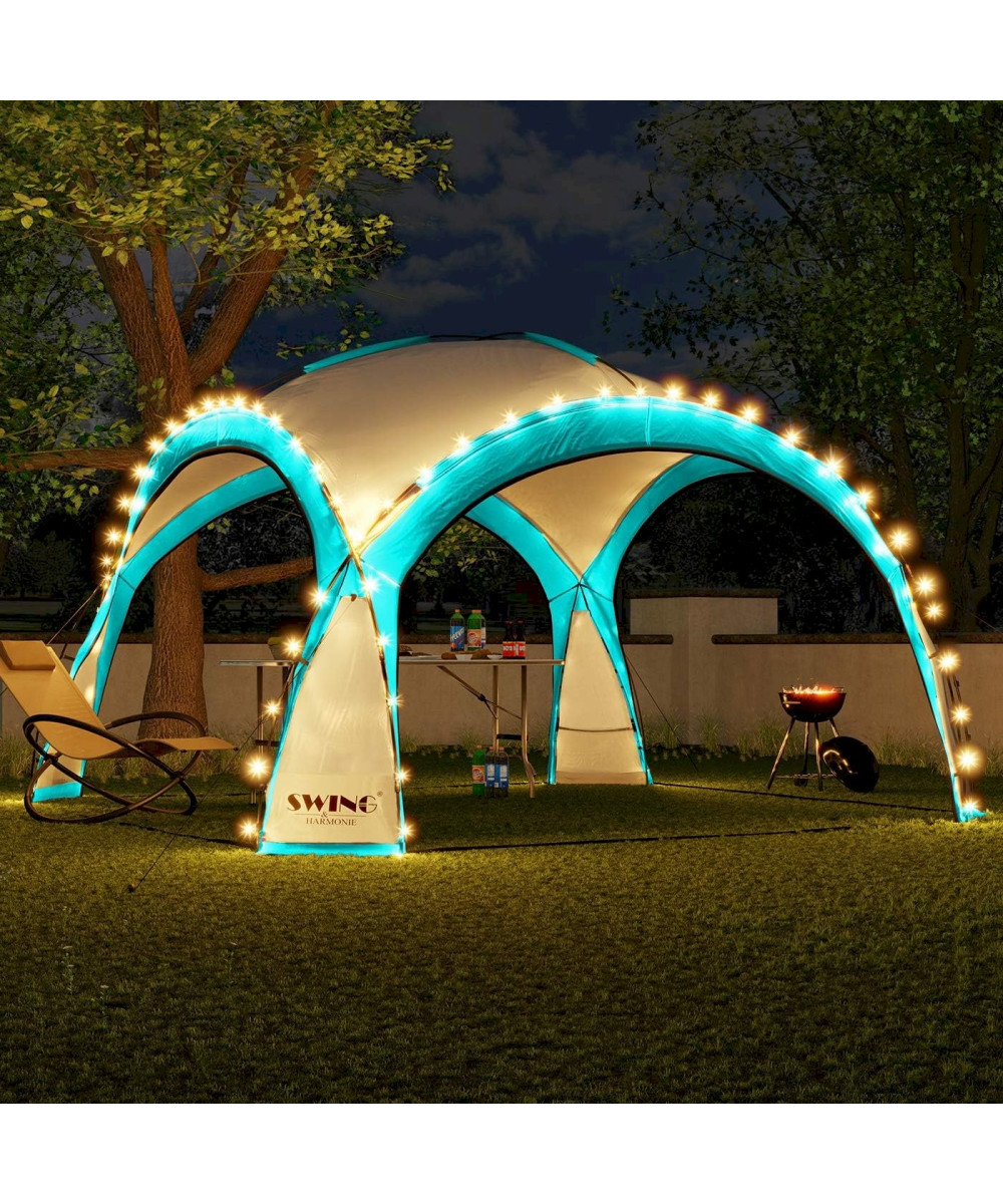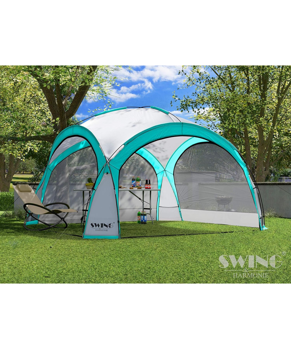 Swing&Harmonie DomeShelter Pavillon de jardin à LED avec panneau solaire 3,60 x 3,60 m turquoise