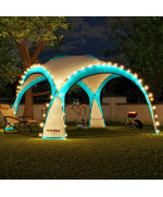 Le pavillon LED Event se distingue par son design moderne et peut être monté rapidement et facilement en un tour de main. L'éclairage LED se compose de 96 LED. Le panneau solaire fourni charge la batterie intégrée pendant la journée.