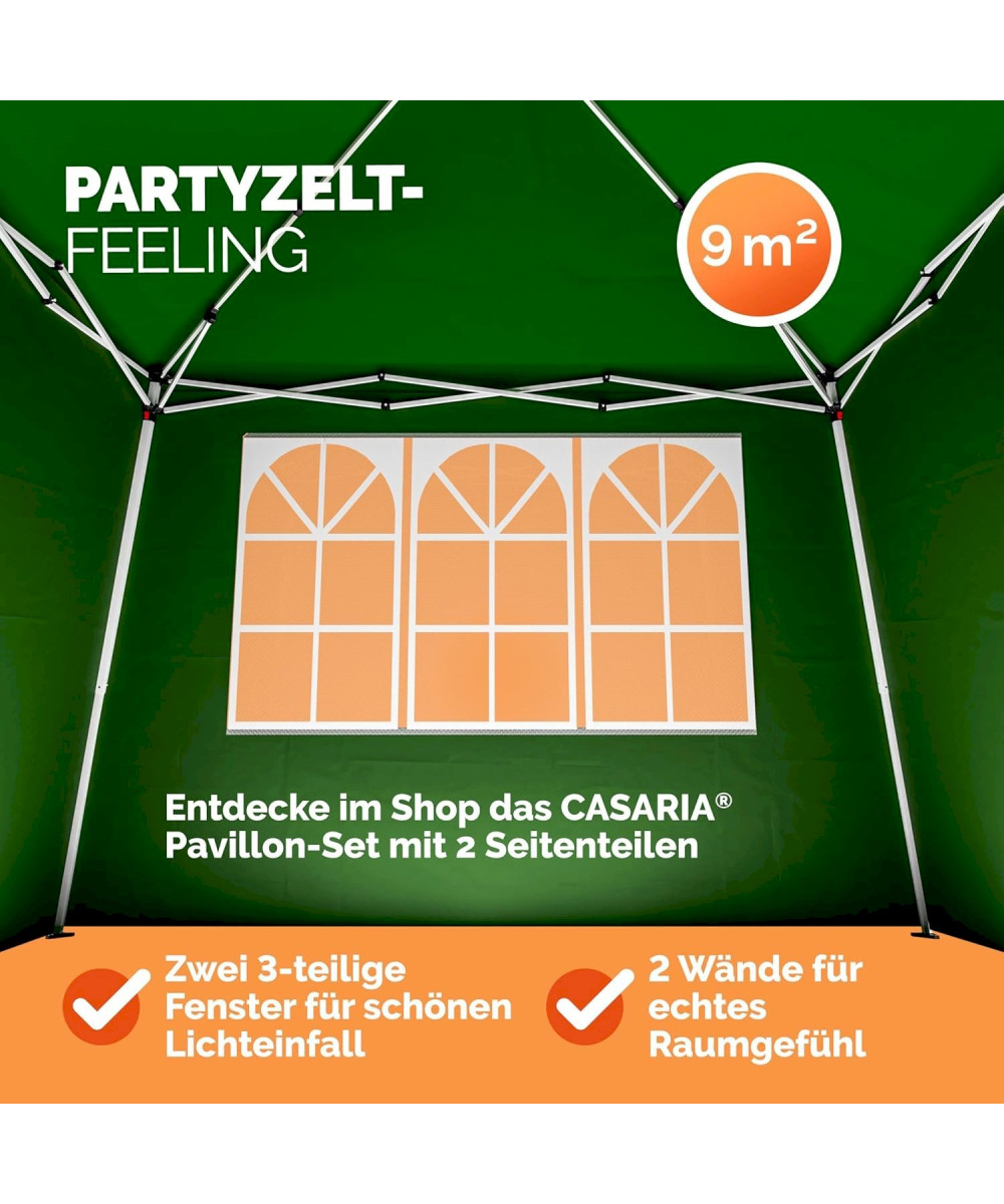 Le set de pavillons CASARIA® Capri, d'une surface de 3 x 3 m, est pliable et étanche. Grâce à la fonction pop-up, le pavillon se monte et se démonte en quelques minutes. Le transport est très facile grâce au sac de transport. Les 4 parois latérales permettent de créer un espace estival en plein air.