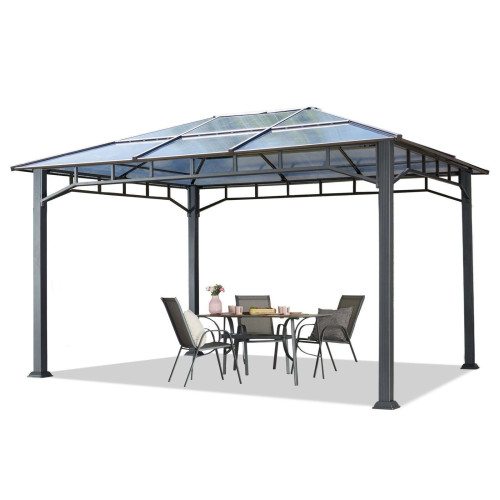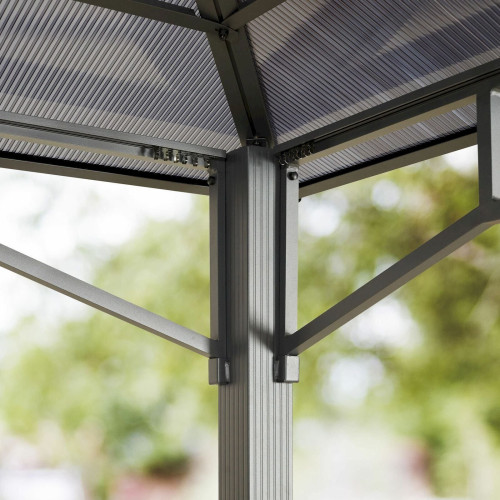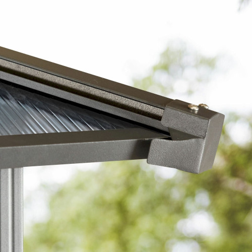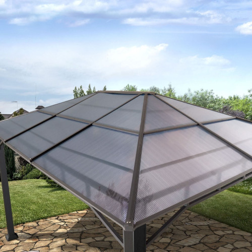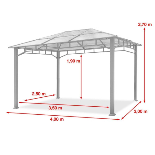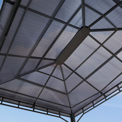 - PROTECTION ET CONFORT garantis tout au long de l’année : son toit 100% imperméable est constitué de plaques polycarbonate d’une d’épaisseur de 8 mm avec une résistance UV 50+. Ces éléments font de la tonnelle une protection sûre contre les intempéries