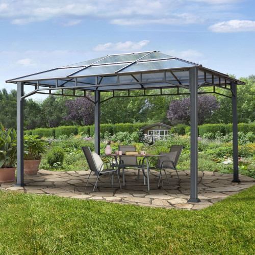 TOOLPORT tonnelle de jardin 3x4 m pavillon de jardin plaque polycarbonate imperméable 8 mm gris