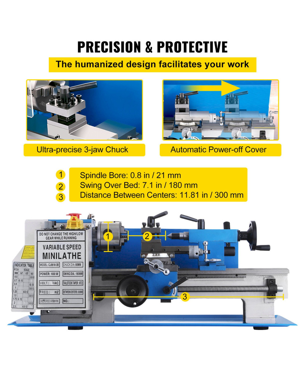 Doté d'un matériau en fer de haute qualité, ce tour à métaux robuste est conçu pour la durabilité et la longévité. - Vitesses Infiniment Variables