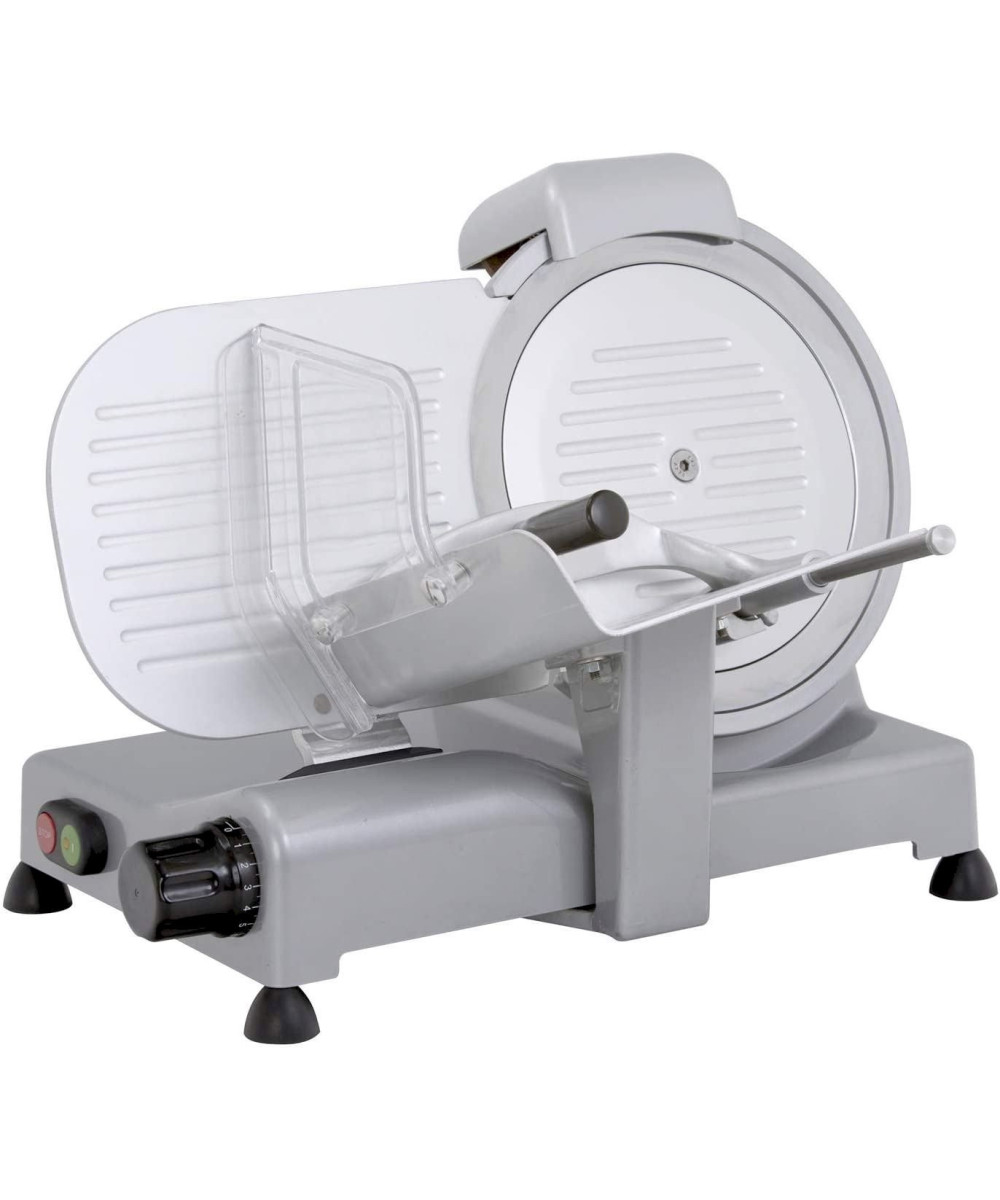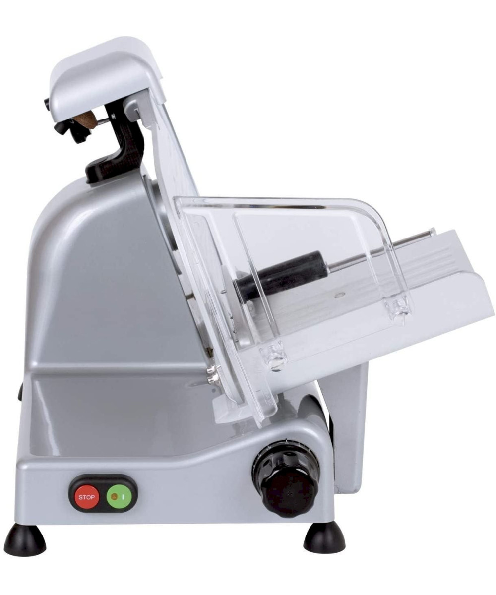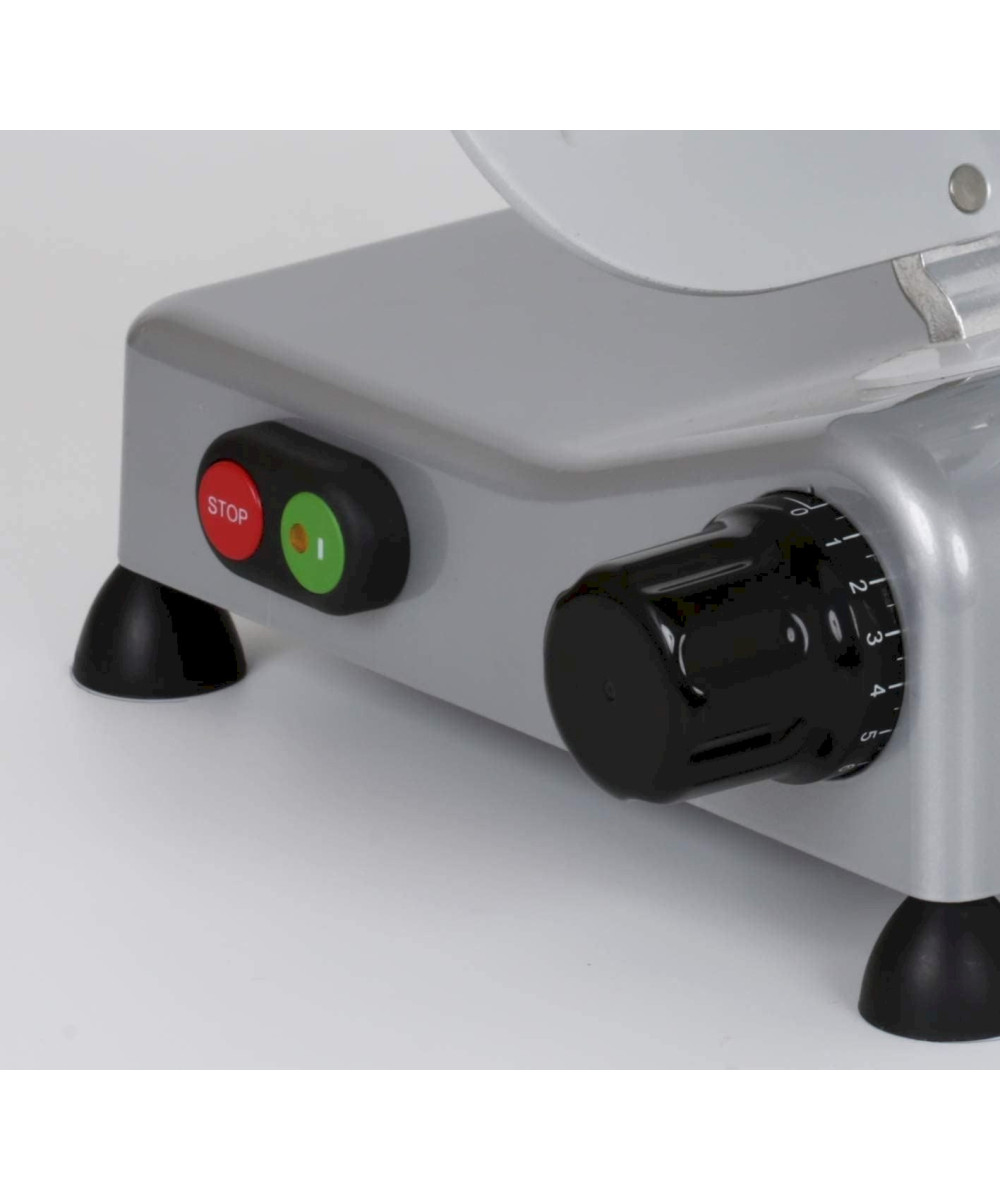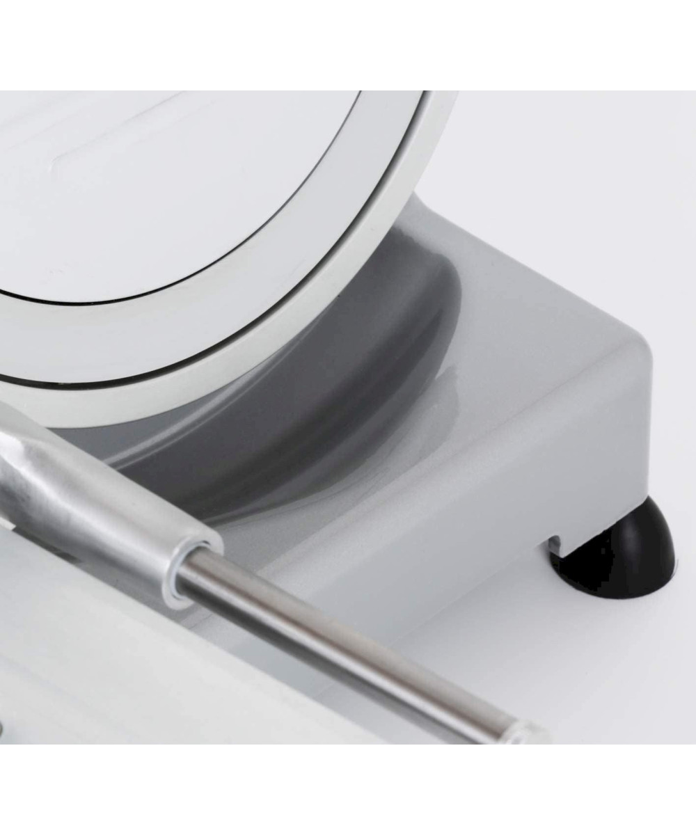 La RGV Luxe 25GS avec un diamètre de coupe de 250 cm est dotée d'un moteur électrique avec puissance de 140W . Cela permet aussi la coupe des charcuteres affinées sans difficulté. L' affûteur fixe va rendre plus facile l'entretien du fil de la lame, pour des tranches parfaites. Il suffit de le tourner de son logement afin d'effectuer un affûtage en toute sécurité.