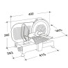 La poignée graduée permet d'effectuer des coupes en millimètre de 0 a 15mm . Le plateau porte-marchandise permet de trancher des aliments aux dimensions de 230x185mm.