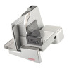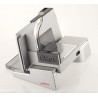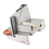 Le plateau de collecte pratique en plastique de haute qualité, facile de nettoyage et idéal pour le service est compris dans la livraison. La glissière dotée d'un revêtement en acier assure une découpe sans efforts. Avec le vaste chariot, à déverrouiller et enlever selon les besoins, la taille de l'aliment n'a presque plus d'importance.