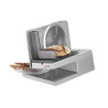 Cette trancheuse universelle en métal est un véritable génie polyvalent. La structure autoportante avec dalle intégrée est particulièrement maniable et stable, et permet de déposer directement les tranches appétissantes et découpées sur des assiettes et des plats. La finition en métal de l'appareil offre un niveau de stabilité et de découpe élevé. Grâce à son inclinaison, un gros aliment mou, tel que le jambon cuit, se découpe facilement. La surface de pose autoportante permet de disposer les aliments découpés de manière appétissante sur des assiettes ou des plats.