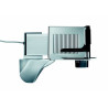Le chariot facilement manœuvrable avec grande surface en acier inoxydable est extrêmement robuste et incassable. Il vous permet également de couper de plus grosses pièces. Le support pour les restes vous permet de couper en toute sécurité jusqu’à la dernière rondelle.